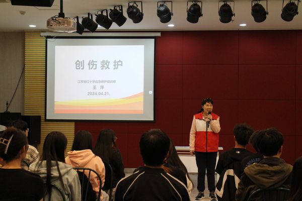为深入推进平安校园建设,增强学生的安全救护意识,提高正确应对校园安全事故和应急救护的能力。4月21日,校团委志愿者工作部联合南京市江北新区红十字应急救护培训中心在综合楼多功能厅开展了“学习急救知识,传递爱心火炬”初级救护员培训活动。我校42名同学参加培训并取得初级救护员证。
