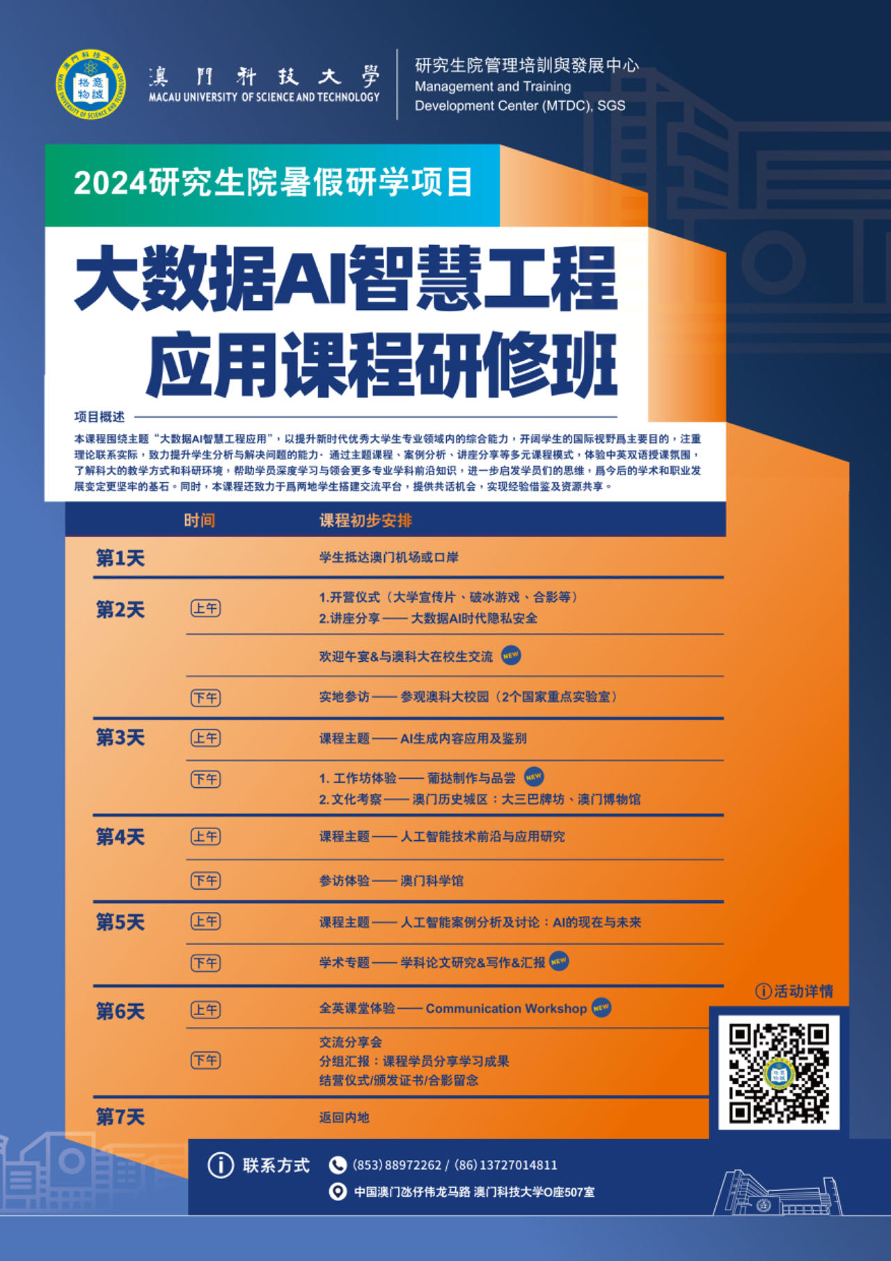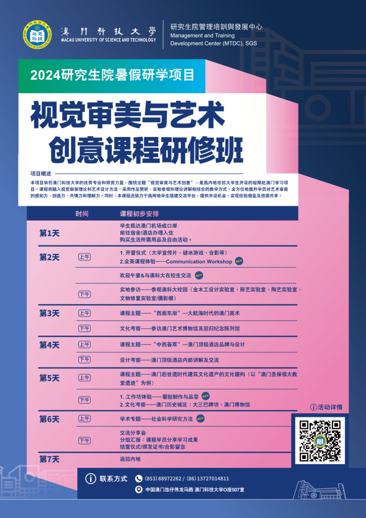 1.PDF文件《2024年澳科大研究生院暑假研学项目》方案