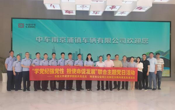 5月20日上午,我校机关党总支与南京市公安局江北新区分局内保支队党总支赴中车南京浦镇车辆有限公司联合开展了以“学党纪强党性,担使命促发展”为主题的党日活动。江北新区公安分局内保支队副支队长雷霞,二大队大队长付直兵、副大队长刘禄元,三大队教导员胡世林和公安干警,我校常务副院长黄学良、党政办公室主任周伟荣、机关党总支书记陈学建以及机关党总支委员、党支部书记共同参加了此次活动。