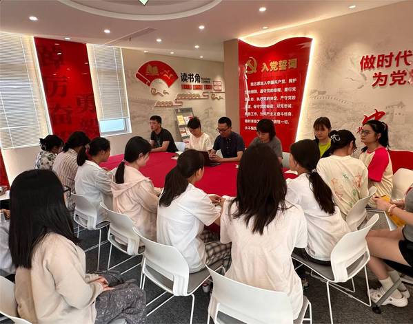 学生党员在一站式社区参加党纪学习教育党课