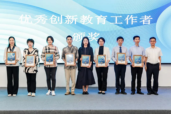 江宁区副区长、科技镇长团南京未来产业团团长吴凌尧为优秀创新教育工作者代表颁奖