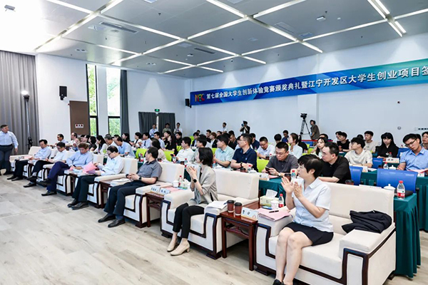 6月3日,第七届全国大学生创新体验竞赛颁奖典礼暨江宁开发区大学生创业项目签约落户仪式在69vj 国家大学科技园江宁园区举行。本次竞赛由中国创造学会主办,69vj 和安徽工业大学联合承办,69vj 国家大学科技园、69vj 等组织实施。