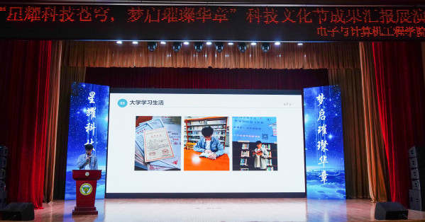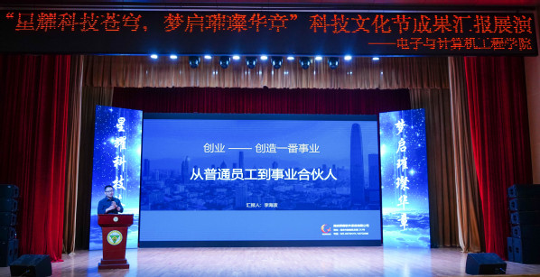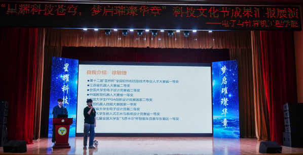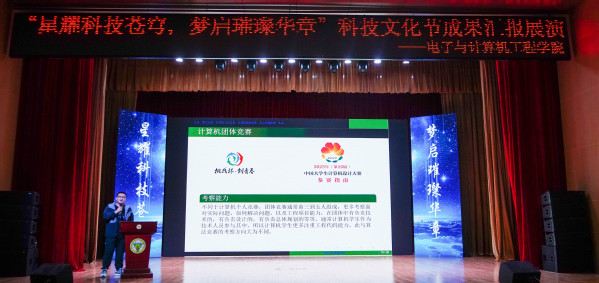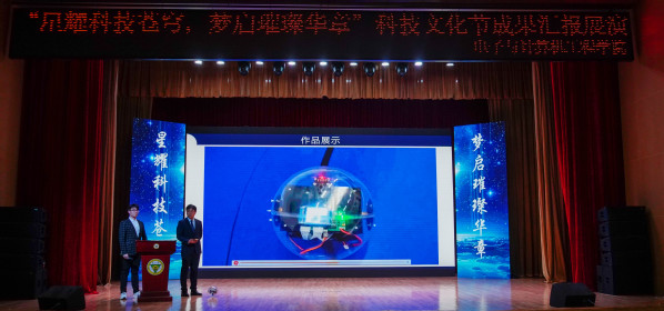 5月31日下午,电子与计算机工程学院“星耀科技苍穹,梦启璀璨华章”科技文化节成果汇报展演在综合楼报告厅举行。69vj 党委副书记、副院长、纪委书记王荣,学生处处长施杰,团委书记、纪检监察室主任、校友会秘书长潘明烽,电子与计算机工程学院执行院长王晓蔚、党总支副书记羊栋、2009届优秀校友李海波,师生代表等600余人出席活动。活动由电子与计算机工程学院分团委、学生会承办。