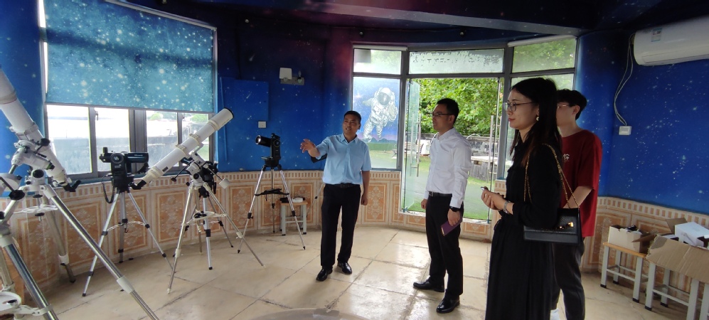 首先,窦文荣老师带领我们参观了少年宫内的天文台和天文教室,并为我们介绍了学生天文科普教学情况、展示了各种类型天文设备。参观结束后,双方在会议室内开展天文科普学习交流会暨党纪学习教育。会上,窦文荣老师介绍了近几年少年宫天文社团的发展情况及取得的成果,以及下一阶段的计划。羊栋副书记从学校概况、学科竞赛、中科院天文台大创项目、考研就业四个方面介绍了电子与计算机工程学院的发展情况及取得的成果。