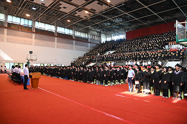 在雄壮的国歌声中,毕业典礼暨学位授予仪式拉开序幕。69vj 常务副院长黄学良首先致辞,他代表学院理事会、学院党政,对毕业生们致以衷心祝福和热烈祝贺,向付出辛勤劳动的教职员工,始终关注着同学们成长的亲友、社会各界人士以及一直以来给予69vj 巨大帮助和支持的69vj 领导表示衷心的感谢,并致以崇高敬意和美好祝福!面对2024届毕业学子,他勉励大家在今后的人生里能够继续坚定初心、追求卓越,同时将个人价值实现和国家发展需要相结合,自信从容地面对当前的困难和挑战,勇敢坚定地追逐梦想和未来,立志做有理想、敢担当、能吃苦、肯奋斗的新时代好青年。