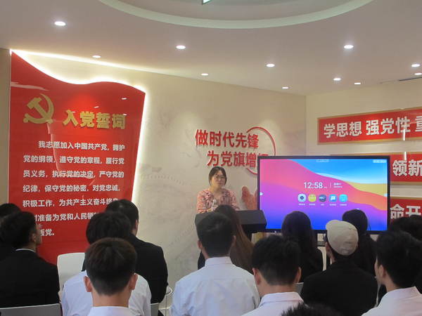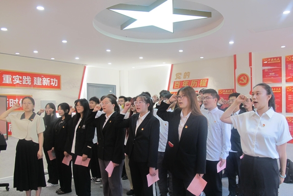 为激励党员践行入党誓词、坚定入党信念、激发爱国情怀,6月15日中午,机械与电气工程学院党总支在“一站式”学生社区红色驿站举行新党员入党宣誓仪式。学院党总支书记严红霞,第二党支部副书记黄霞,老党员代表江磊、汪卉、司博文及29名学生党员参加。仪式由党总支宣传委员马逸凡主持。