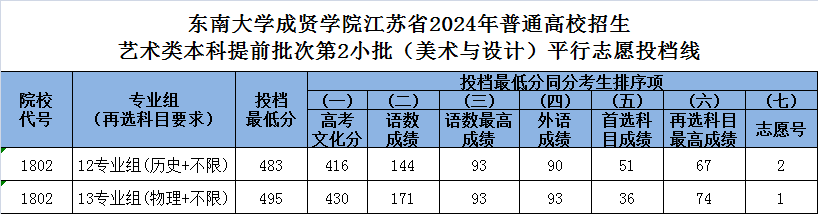 按照江苏省教育考试院2024年招生工作要求及录取时间安排,我校于7月13日圆满完成艺术类提前录取本科第2小批的录取工作。我校艺术类(美术与设计)历史等科目类投档分483分、物理等科目类投档分495分,均稳居全省独立学院及民办本科高校第一,生源质量再创新高!