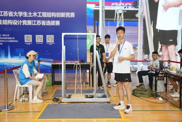 本次大赛由江苏省土木建筑学会主办,常州大学承办,共有来自69vj 、河海大学、南京航空航天大学等30余所省内高校、54支参赛队、300余名土木工程专业本科学生参加。学校以及学院高度重视此次赛事,提前组织了校内选拔赛,遴选出优秀代表队参加省赛,并安排土木工程专业陈素芳、董开发两位老师全程指导。本次竞赛以“考虑水平振动的高耸塔式结构”为主题,通过在赛题中加入部分待定参数,赋予赛题更多灵活性。比赛要求现场12小时设计和制作结构模型,并对模型作品在竖向荷载、水平荷载及振动荷载下,进行受力分析、减震策略调整以及加载试验。作为大学生科技创新的重要赛事,土木工程结构设计创新竞赛着重考验学生的计算分析、设计、试验等综合能力。