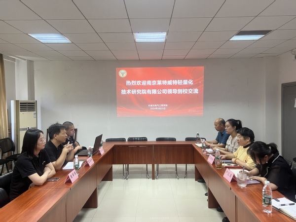 8月22日上午,南京莱特威特轻量化技术研究院有限公司副总经理杜春明一行来我校机械与电气工程学院调研交流。学院党政领导和辅导员代表热情接待了来访一行。