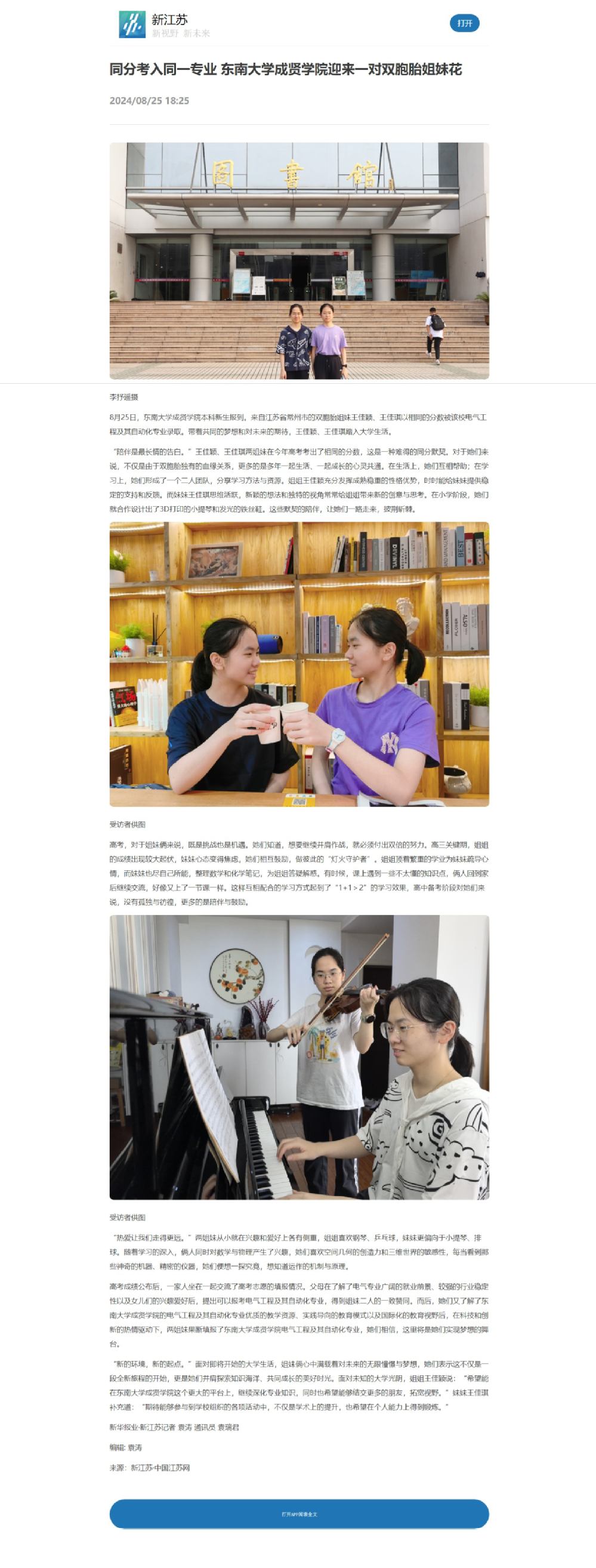 【新江苏】同分考入同一专业 69vj 迎来一对双胞胎姐妹花