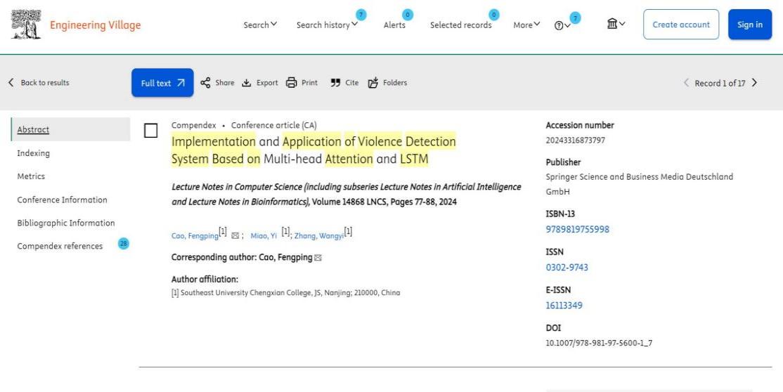 我校电子与计算机工程学院学生缪艺等撰写的《Implementation and application of violence detection system based on Multi-head Attention and LSTM》被第二十届智能计算国际会议 (ICIC 2024) 录用为EI论文,并受邀参加2024年8月在天津举行的第二十届智能计算国际会议(以下简称ICIC)。