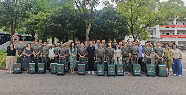 在训练基地,潘部长代表学校向他们表示祝贺,勉励他们要积极参加训练、夯实思想根基、提高适应能力,争取早日成为一名政治合格、军事过硬、技术精湛、作风优良的合格军人。他强调,参军入伍是一份崇高的荣誉,也是一份重大的责任。针对接下来的军旅生活,希望同学们:一是要坚定信念,牢记使命,始终保持对祖国的忠诚和对军人职业的热爱。二是要努力学习,提高本领,为成为一名优秀的军人打下坚实的基础。三是要团结协作,共同进步,与战友们和睦相处、互帮互助,共同为实现强军梦贡献力量。随后,辅导员们与各自的学生亲切交谈,了解他们的训练情况和生活状态,并为他们送上了学校特别定制的行李箱表达祝福。