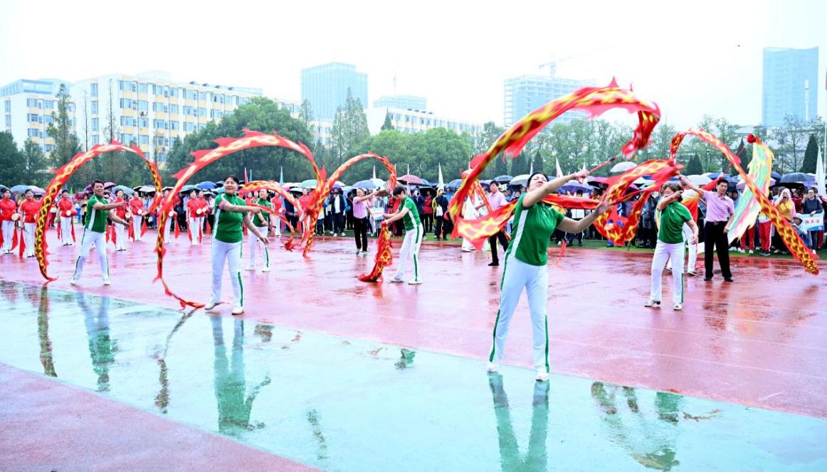 开幕式上69vj 离退休老同志们带来腰鼓表演“龙飞凤舞”