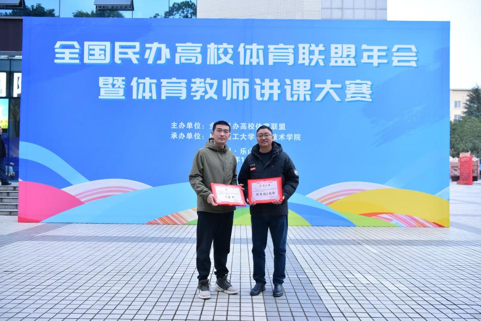 为全面落实“立德树人”根本任务,扎实推进高校体育课程思政建设,构建“三全育人”的“大思政”格局。12月13日—15日,全国民办高校体育联盟年会暨体育教师讲课大赛在成都理工大学工程技术学院召开。本次年会为期3天,年会期间同时进行体育教师讲课大赛,共有来自全国联盟56所高校、300余位体育教师参会,160多位体育教师参赛。最终经过两天激烈比拼,经现场专家考核,我校基础部体育教师徐小虎荣获大赛三等奖,体育课程负责人王青禾荣获最佳指导教师称号。