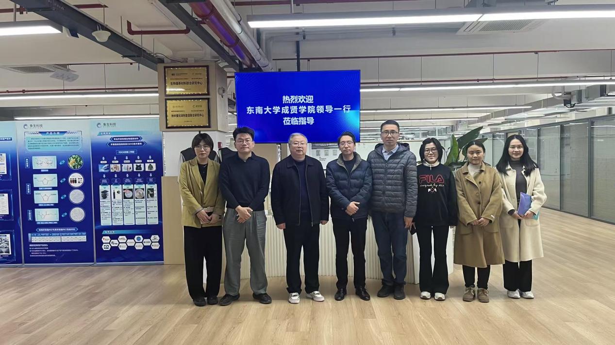 南京象生科技有限公司副总经理梁皓、市场总监张鹏龙、人力资源总监康同宝热情接待。在负责人的陪同下,林院长一行首先参观了材料化学工程国家重点实验室江北创新中心,通过沉浸式的体验和详尽的讲解,深入了解了江北创新中心作为高水平科技创新和重大成果转化平台,充分发挥政产学研贯通体系对未来科技调控与产业的支撑优势。