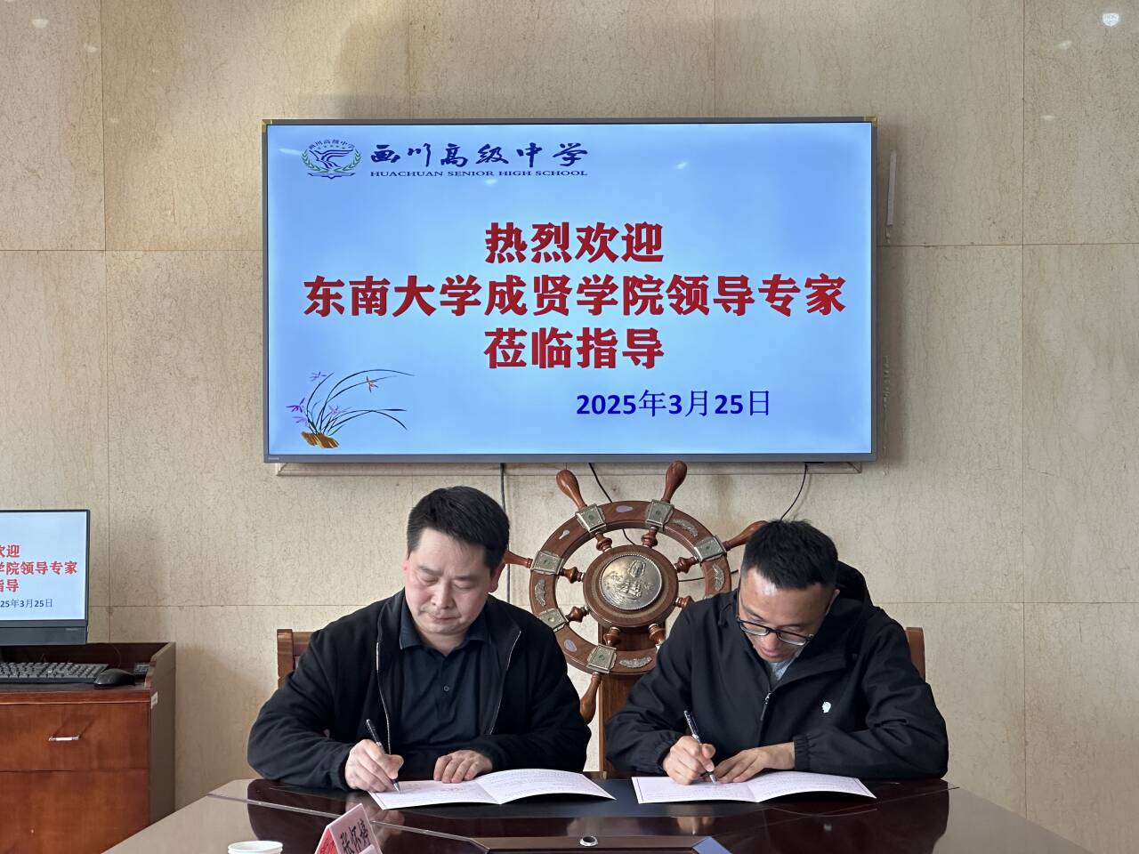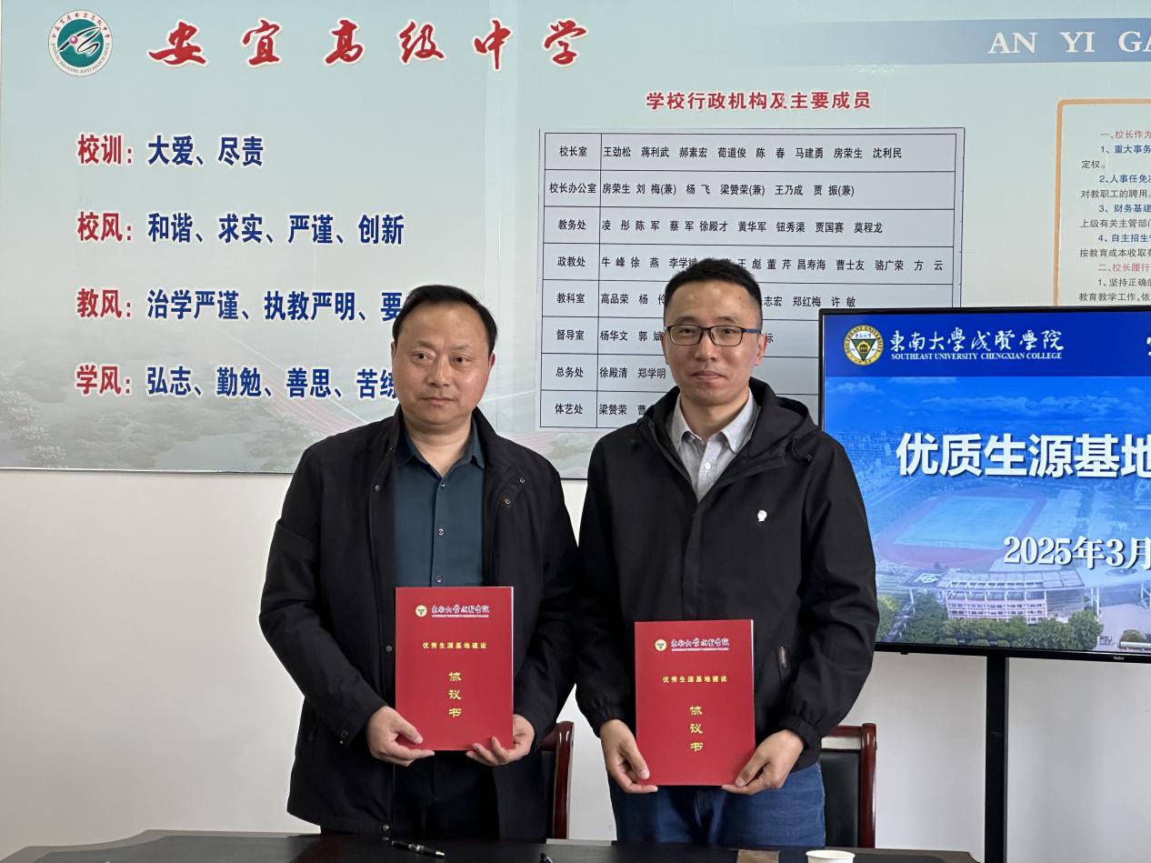 安宜高级中学副校长乔秀宏、程守权,教务主任凌彤、校办主任汪济涛和画川高级中学校长刘名科、副校长蔡萍云、校长办公室主任张中学出席了仪式。两所中学校领导对我校一行的到来表示热烈欢迎,并分别介绍了学校办学规模、教学模式、办学成果等,指出此次“优质生源基地”授牌是对两所中学办学质量的充分认可,希望与我校共同探索高中与高校合作育人的有效途径,为培养更多优秀学生搭建更好的平台。张志胜书记对两所高中长期以来向69vj 输送优秀生源表示感谢,并介绍了69vj 的办学历史、师资力量、教学建设、办学成果等情况,希望与两所高中本着“积极沟通、密切合作、共同培养、互利共赢”的原则共建“生源培育共同体”,一方面,我校定期选派专家教授深入优秀生源地高中开展学术讲座、生涯规划指导等活动;另一方面,欢迎优秀生源地高中师生来校参观交流,亲身体验我校秉承于69vj “止于至善”的办学理念和严谨求实的治学氛围。