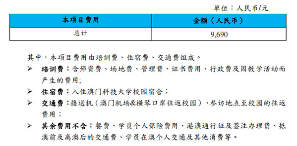 课程详情见附件正文《2025年澳门科技大学研究生院暑期研学项目》;项目结束后,学员将获得澳门科技大学研究生院管理培训与发展中心(MTDC)颁发的证书。