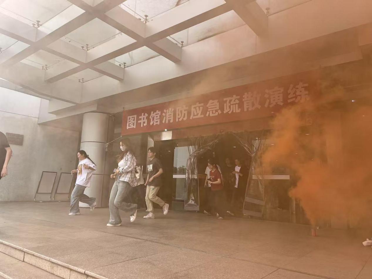 本次演练涵盖两个主要环节。首先是消防器材使用培训环节,本环节向在场师生详细讲解了干粉灭火器与二氧化碳灭火器的规范使用方法,从握姿、按压力度到喷射角度等操作细节均着重强调。同时还特别提醒大家,在逃生疏散时,务必牢记切不可乘坐电梯,应利用随身衣物捂住口鼻,尽快撤离现场,最大程度保障自身安全。随后进入疏散逃生演练环节,根据计划,馆内的消防报警设备准时发出报警信号,图书馆迅速启动应急疏散预案,现场工作人员即刻引导广大师生朝着图书馆外有序、快速地疏散。整个疏散过程紧张而不慌乱,展现出良好的组织性与纪律性。