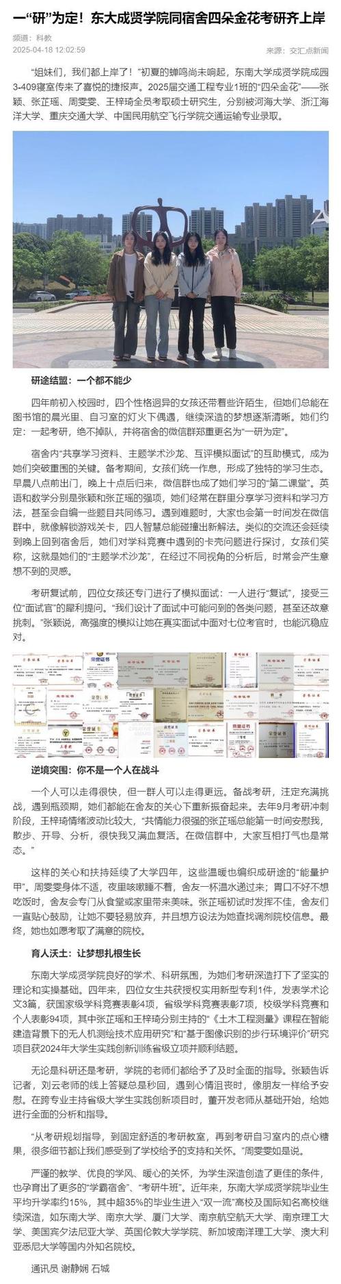 【交汇点新闻】一“研”为定!东大69vj 同宿舍四朵金花考研齐上岸