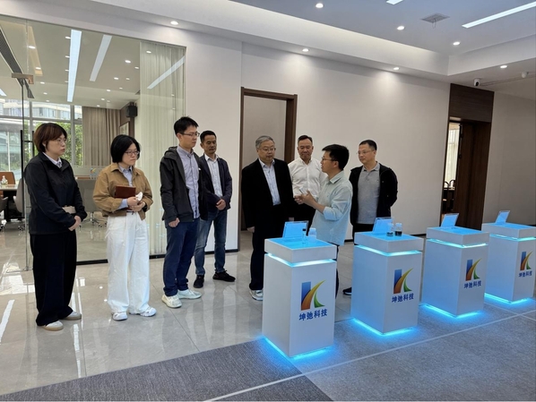 在安徽坤弛科技有限公司,企业负责人陪同林院长一行参观了天长市金牛湖高新技术材料产业孵化与工程服务研究中心,深入了解了中心作为集技术对接、科技转化、投资孵化、招才引智于一体的科创平台,既满足企业现阶段对技术的需求,又能大力提升天长企业的研发能力,提高核心竞争力。