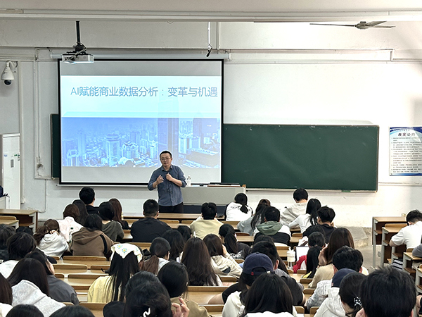 为更好地帮助同学们理解AI技术在商务数据分析领域的应用,本次讲座聚焦于AI在商业数据分析中的具体应用场景,结合实现思路,展示AI如何赋能零售、金融、电商等行业的商业数据分析。讲座伊始,陈老师从生活经验引入数字化时代数据资产与AI技术融合对企业的重要性;接着详细为学生们讲解了AI在数据分析中的三大优势:自动化处理数据、精准预测未来趋势及为客户提供个性化服务;然后陈老师列举了零售、金融、电商及快消品行业AI技术应用数据分析的案例,让同学们更直观地了解AI技术在商务数据分析领域的应用;最后,陈老师强调了AI赋能数据分析需要依托完善的技术架构和未来发展趋势。