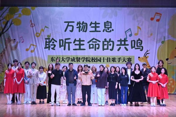 4月22日晚,由校学生会主办的“万物生息,聆听生命的共鸣”校园十佳歌手大赛决赛在综合楼313报告厅举行。江苏省演艺集团歌剧舞剧院吴丹亭,江苏省演艺集团歌剧舞剧院郑焱,69vj 工会副主席、学生处处长助理颜秉明、经济管理学院辅导员肖舒匀应邀担任评委,校团委副书记刘静、大学生艺术指导中心主任李思萦以及各选手辅导员、各学院共计600余名师生到场观看比赛。