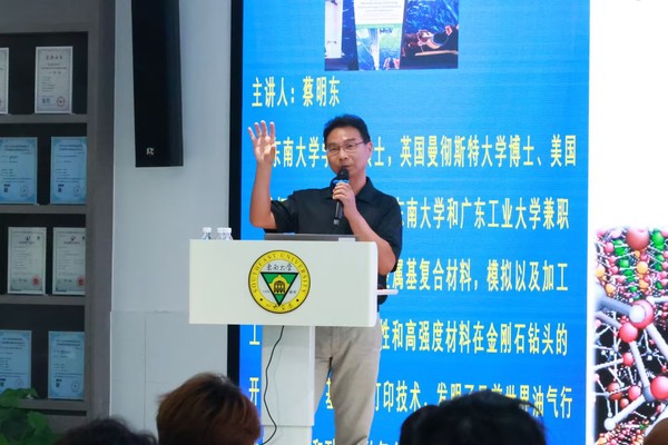 蔡明东教授主要研究方向是金属基复合材料,模拟以及加工工程,尤其是高耐腐蚀性和高强度材料在金刚石钻头的开发与应用。讲座伊始蔡教授以3D打印技术切入,先回顾对比目前全球盛行的各项增材制造的工艺技术及其特性,聚焦3D打印技术在油气行业的应用和相关的材料开发,盘点增材技术在环境可持续性方面的影响。接着通过列举使用电子束技术合成镍基碳化钨复合材料改造传统油气行业关键器件的生产工艺过程,向同学们展示了新型复合材料表现出显著的耐腐蚀性和高强度,有助于改进钻头生产工艺过程将温室气体排放大幅减少。在互动交流环节,师生们围绕“3D打印材料在油气特殊环境下的耐久性”“如何实现3D打印技术在油气行业的大规模产业化应用”等问题踊跃提问,蔡明东教授耐心细致地一一作答,现场学术氛围浓厚。