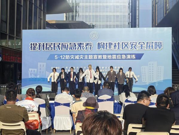 5月12日下午,由江苏省防灾减灾中心、江北新区应急管理局、江北新区沿江街道办事处、江北新区沿江街道路西社区主办,共青团69vj 委员会协办的“5.12防灾减灾宣教暨地震应急演练活动”在新星里商业街拉开帷幕。校团委副书记刘静、大学生艺术指导中心主任李思萦带领演出学生参加了此次活动。