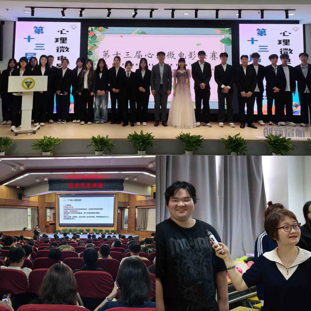 4月—5月,心理健康教育中心开展了心理微电影大赛初赛、复赛及决赛,比赛为学生提供表达内心情感、释放心理压力的平台,更通过专业指导与实践体验,有效提升学生的心理健康意识和自我调节能力。4月25日,由学生自编自演的爱情主题情景剧《心动解密》引发热烈反响。该剧通过三幕校园情感故事,生动诠释亲密关系中的沟通艺术与边界建立。专业心理教师现场结合剧情进行互动解析,引导学生在趣味参与中学习健康的恋爱观。此外,“屋檐下的温暖”宿舍关系专题讲座也吸引众多学生参与。中国心理学会注册督导师、原69vj 心理健康教育中心主任、省教育厅心理健康教育专家指导委员会委员郭晋林老师通过案例分析、角色扮演等环节,指导学生掌握化解矛盾、建立支持性宿舍关系的实用技巧。