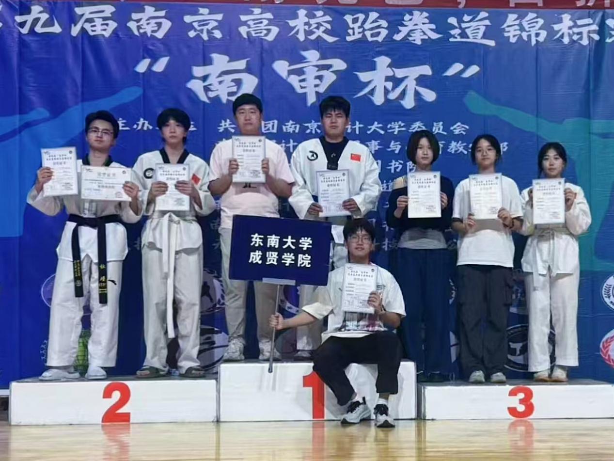 跆拳道社斩获佳绩。5月25日,第九届南京高校跆拳道锦标赛在南京审计大学圆满收官。我校跆拳道社团积极参赛,凭借出色的表现充分展现了学校的风貌。此次赛事中,社团成员收获颇丰,共获得太极六章三等奖证书2张、太极七章二等奖证书1张、太极八章一等奖证书2张、太极八章二等奖证书1张、太极八章三等奖证书2张,同时还荣获一项道德风尚奖,彰显了我校跆拳道社的竞技实力与精神风采。