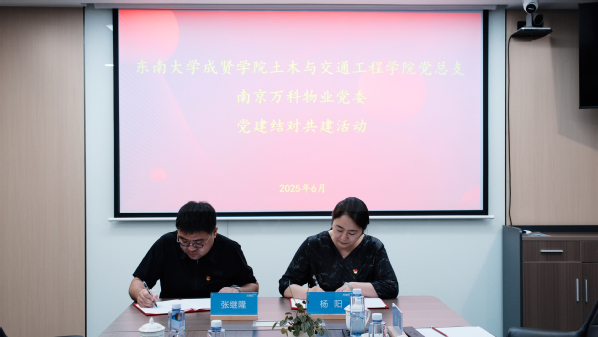 座谈结束后,土木与交通工程学院党总支和南京万科物业党委签署了合作协议。这一协议的签署标志着双方党组织将在共促队伍培养、共享优势资源、共抓阵地建设、共推事业发展等多个领域展开深度合作。双方将充分发挥各自的优势,探索创新党建工作的新模式,为双方党员的成长与发展搭建更广阔的平台。