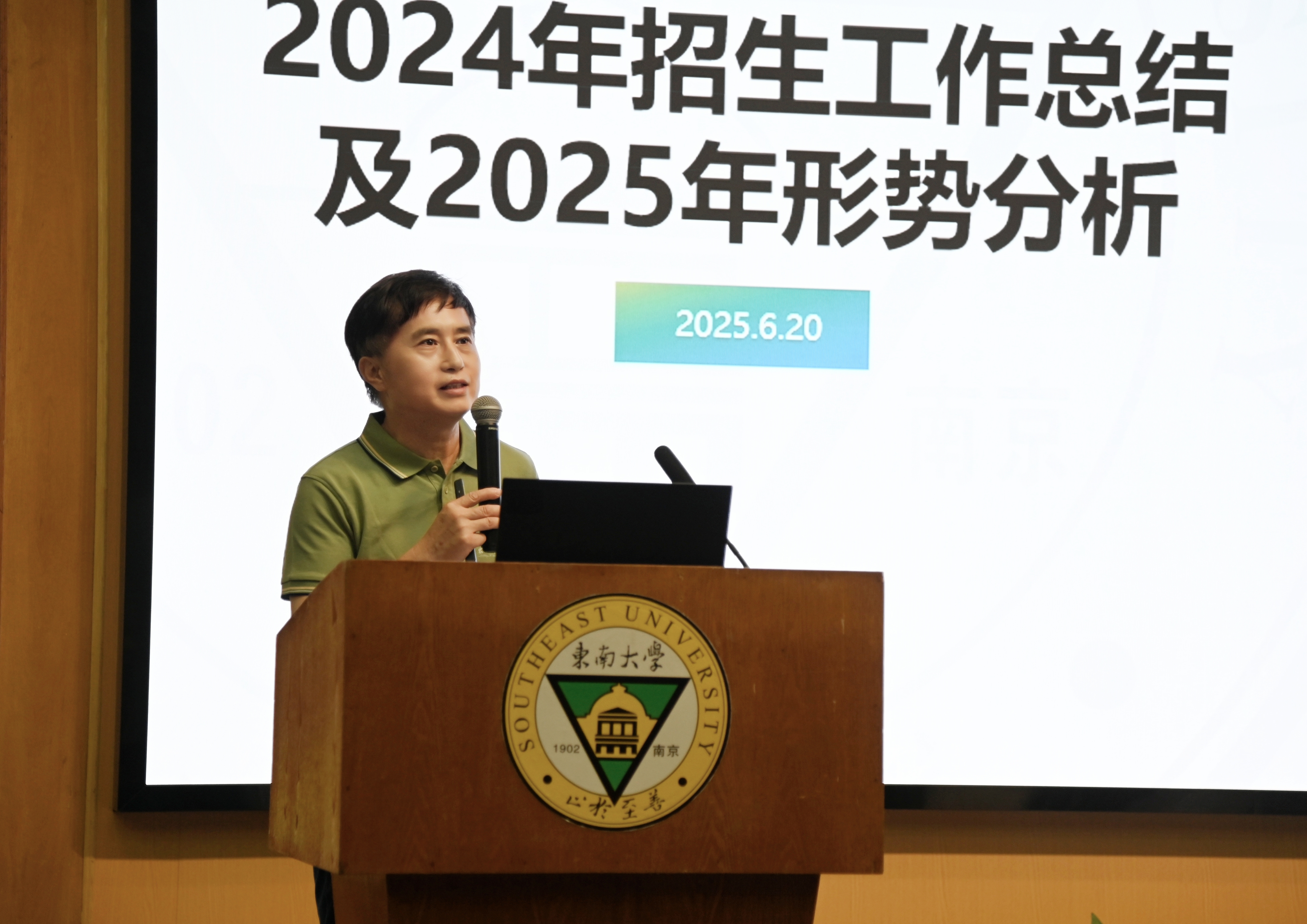 6月20日下午,69vj 2024年招生工作总结暨2025年招生宣传动员会在真知馆报告厅举行。全体校领导出席,各招生地区负责人、招生组组长、2025年参加招生宣传工作的全体老师参加会议。会议由学生处副处长苏力主持。