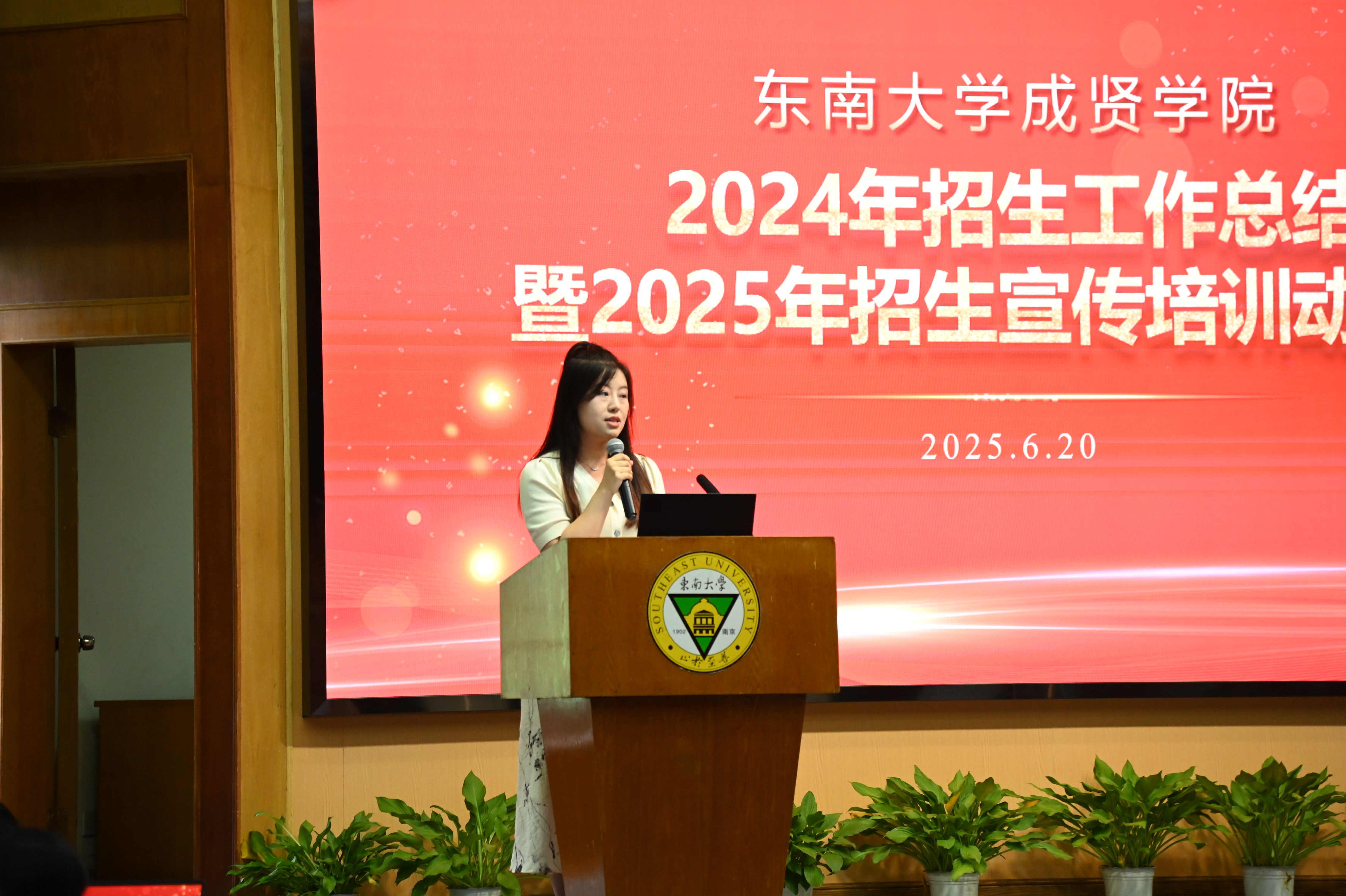 会议分为招生工作总结动员和业务培训两个阶段。在总结动员阶段,学生处处长施杰首先作2024年招生工作总结及形势分析,系统回顾了2024年招生录取情况及工作措施,分析了2025年招生工作形势和招生工作变化。苏州招生组潘天娇老师随后分享了招生宣传的实战经验,从精准对接、服务细节和品牌传播等角度为与会人员提供了宝贵经验。