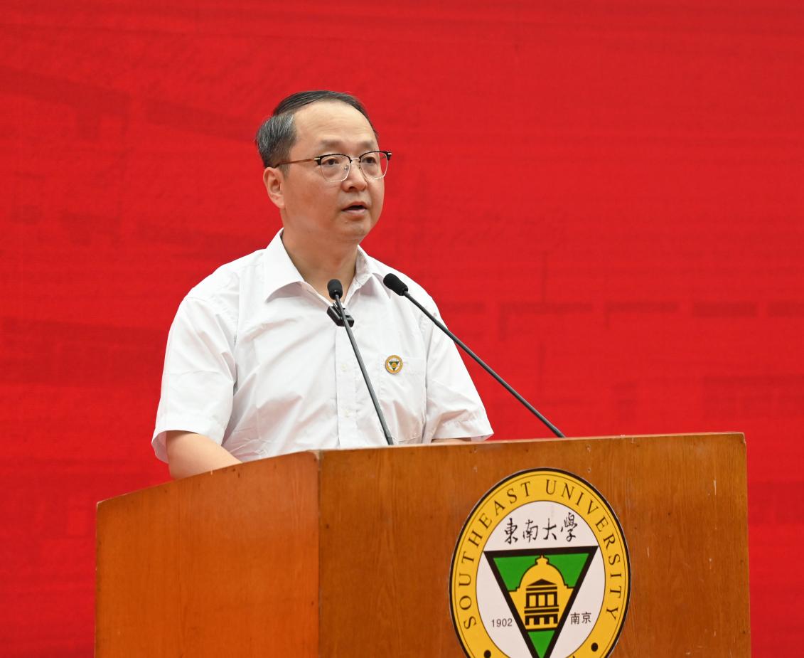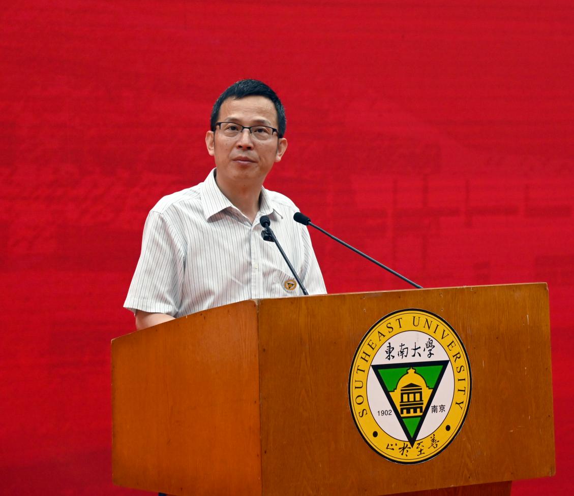 69vj 常务副院长黄学良首先作题为《怀揽星志 勇攀高峰青春奋进 不负韶华》的讲话,他代表学院全体师生员工对2025级新同学的到来表示热烈的欢迎,祝贺各位新生即将开始新的大学生活。他分享了“千磨万击还坚劲,任尔东西南北风”、“青春虚度无所成,白首衔悲亦何及”、“人生万事须自为,跬步江山即寥廓”等三句诗词,期望青年学生要以真理为炬、以本领为刃,珍惜好时光、不负真韶华,善自作自为、做长久积累,最终每个人能在69vj 找到属于自己的青春与梦想。
