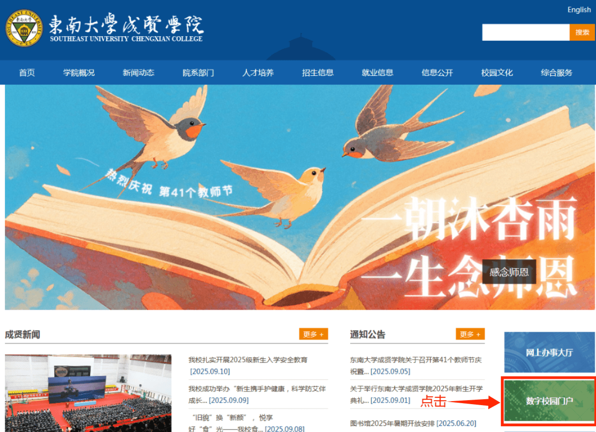 一、登录学校官网,网址://69vj.net/,点击“数字校园门户”