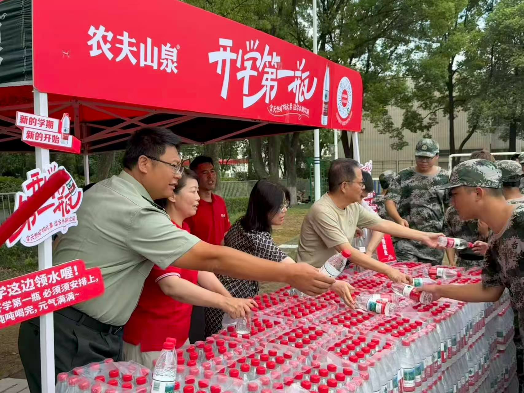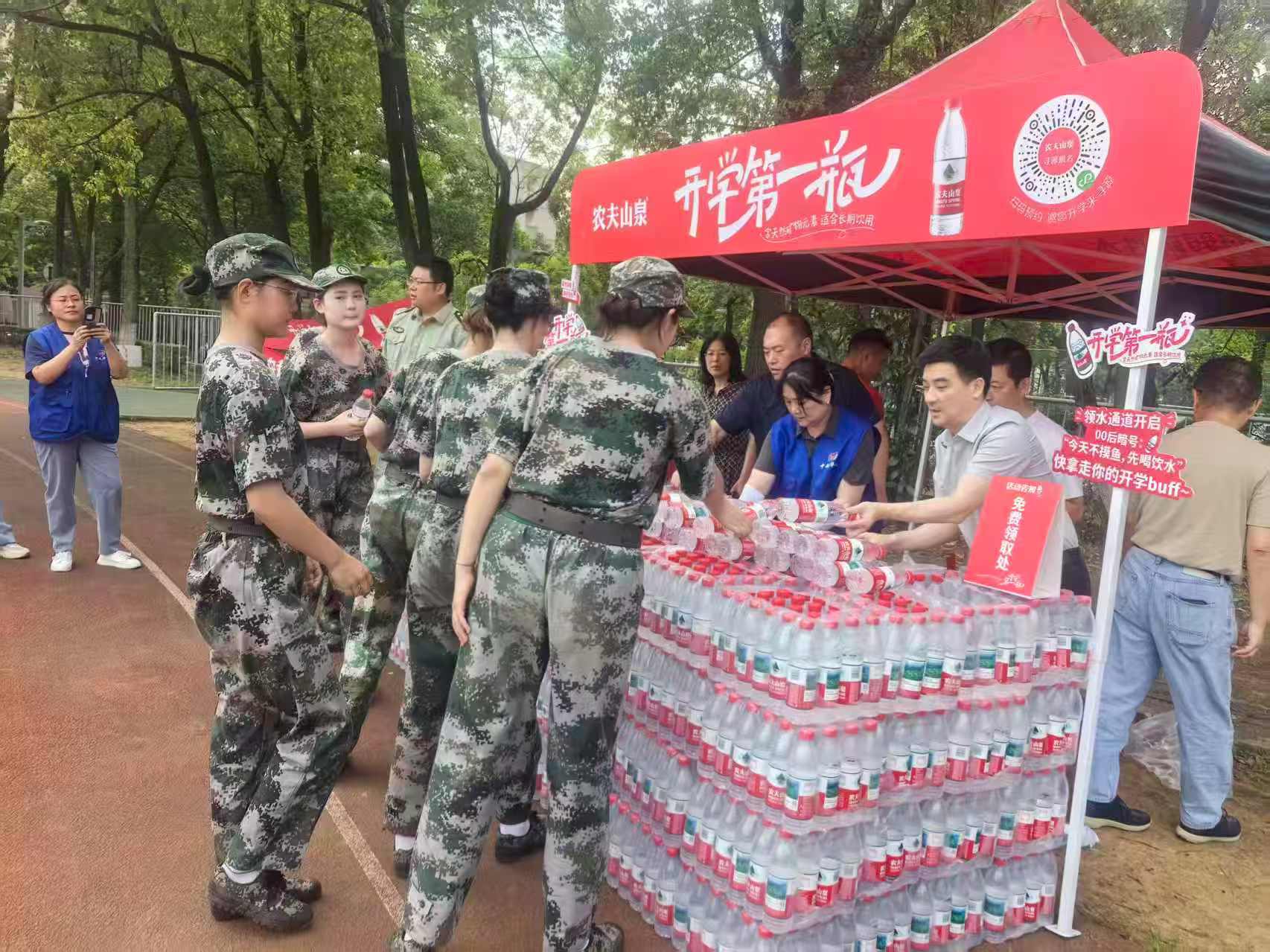 虽已立秋,但军训期间的温度仍然“热情高涨”。后勤管理处心系参训教官和新生,经过前期积极沟通,联合中超超市为广大新生每人赠送了开学第一瓶水。