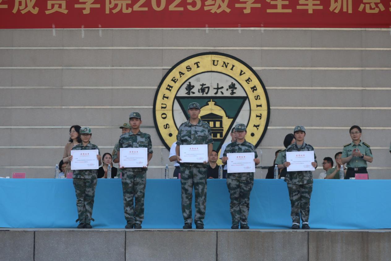 校常务副院长黄学良宣读了《69vj 2025级学生军训团嘉奖令》,对军训中涌现的先进集体与个人予以表彰,并希望获奖单位和个人能够戒骄戒躁,谦虚谨慎,再接再厉,在各自的工作和学习岗位上脚踏实地、勤奋钻研、不懈拼搏,力争取得更大的成绩。他同时也希望其他单位与同志以他们为榜样,积极学习、见贤思齐,共同进步。随后,与会部队和学院领导共同为获奖代表颁奖。