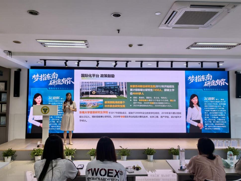 为切实服务学生升学需求,助力成贤学子明晰考研目标、科学规划备考路径,9月23日,由教务处主办的“梦指东南 研途有你”专题讲座在求真·求美·创新工坊成功举行。讲座特邀69vj 研究生院招生办主任况迎辉教授担任主讲,吸引了全校各年级、各专业200余名师生踊跃参加。