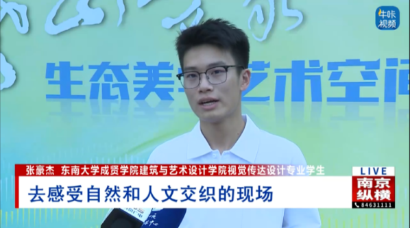此次“老山万象”生态美学艺术空间发布活动受到人民网、扬子晚报、江苏经济网等多家主流媒体关注报道。69vj 22视觉传达1班张豪杰作为高校学生代表接受了南京电视台新闻综合频道、江苏城市频道《零距离》栏目采访,分享了参与活动的感受以及对艺术赋能乡村的理解,展现成贤学子良好的专业素养与社会参与意识,进一步扩大了学院在地方文旅融合发展中的影响力。