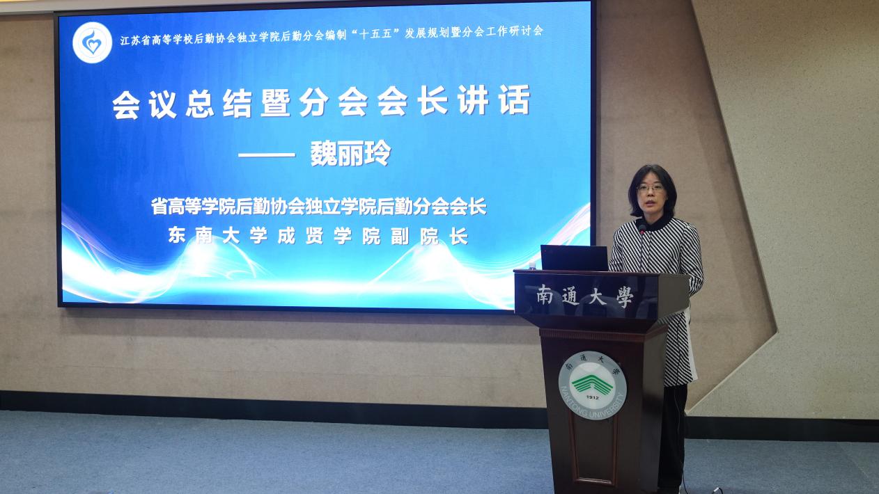 10月23日至25日,由江苏省高等学校后勤协会独立学院后勤分会主办、南通大学杏林学院承办的“江苏省高校后勤协会独立学院后勤分会编制‘十五五’发展规划暨分会工作研讨会”在南通大学启东校区举行。正值党的二十届四中全会擘画“十五五”发展蓝图的关键节点,来自省内19所独立学院的分管后勤工作的校领导、部门负责人及协会企业会员代表共40余人齐聚一堂,以教育强国建设为引领,共同探讨独立学院后勤高质量发展新路径。我校副院长魏丽玲,后勤管理处相关负责人受邀参加。