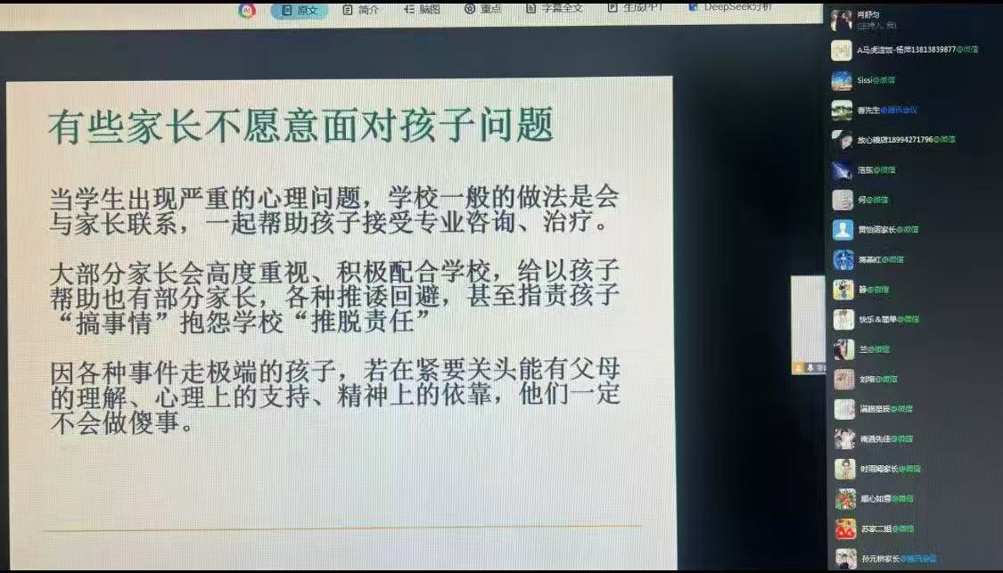 此次讲座既帮助家长深入理解了大学生适应期的心理特点与需求,掌握了科学的亲子沟通与支持方法,也进一步凝聚了家校协同育人的共识,搭建起家校联动守护学生心理健康的桥梁,为学子平稳度过大学适应期、实现身心健康与全面发展筑牢了坚实保障。