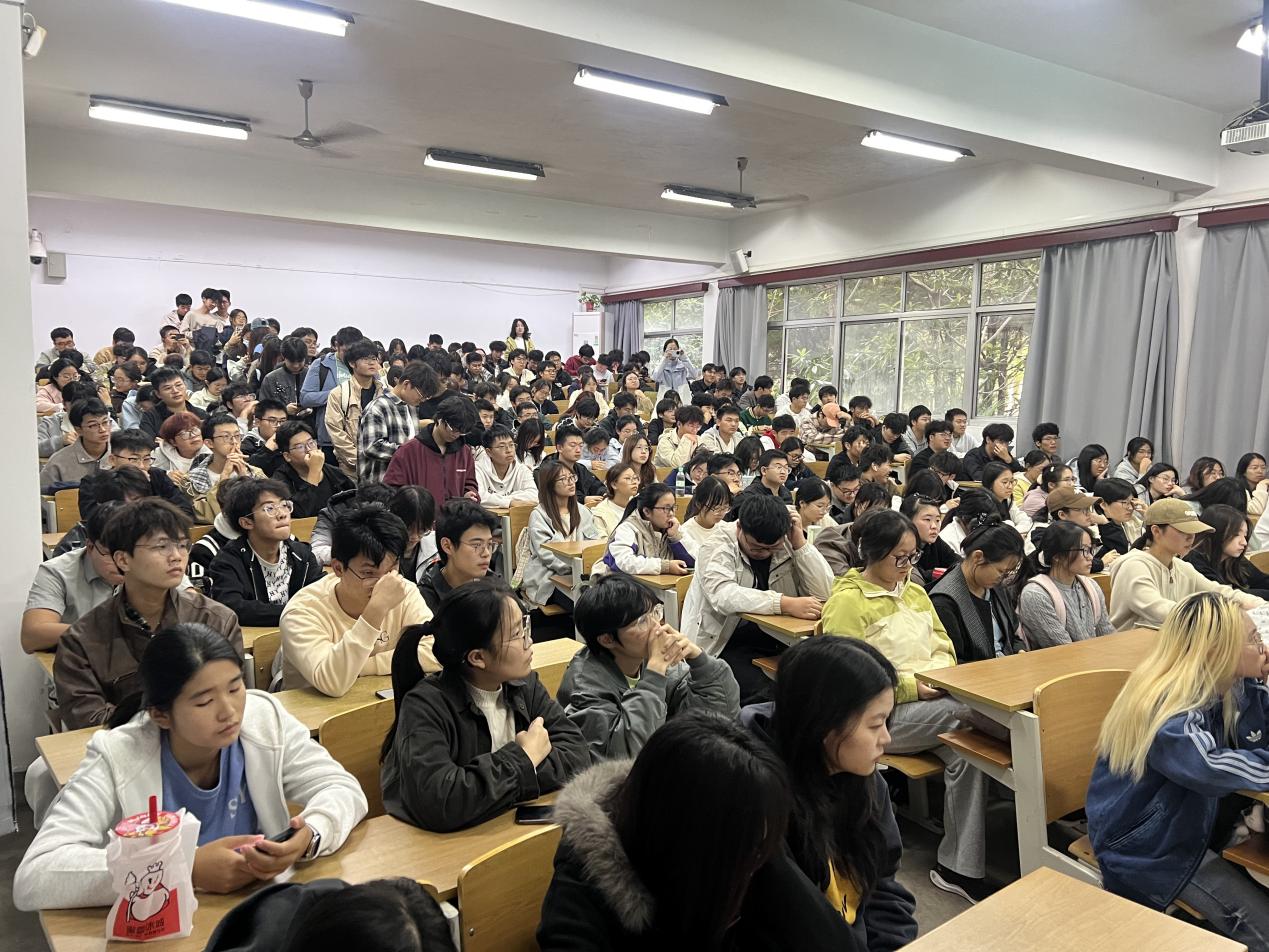 为帮助低年级在校学生明晰考研认知、解除备考疑惑、消除心理压力,11 月 3 日,由图书馆联合教务处、学生处共同举办的“博学易知·考研规划专题公益讲座” 在成贤院 113 室顺利开展。本次活动特邀金牌讲师、国内十佳考研规划师王海丰主讲,围绕考研形势研判、备考流程管控及学科复习策略展开专题指导,吸引了230余名有志于考研的学子积极参与。