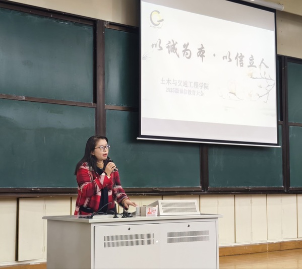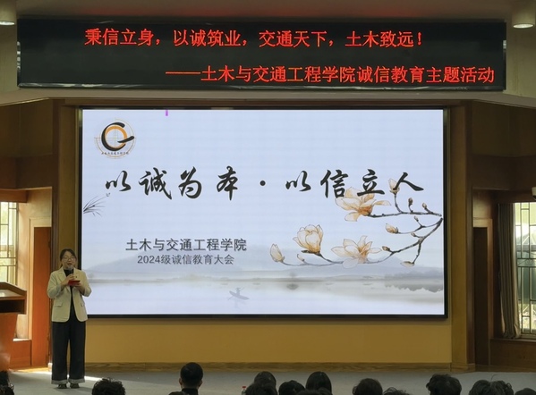 为切实引导学生树立诚信意识、坚守学术底线、筑牢职业根基,营造风清气正的校园生态,11月11日—12日,土木与交通工程学院分别于华罗庚馆101教室、真知馆报告厅举办了以“秉信立身,以诚筑业,交通天下,土木致远”为主题的诚信教育主题大会。69vj 党委学工部部长、学生处处长施杰,土木与交通工程学院相关领导、辅导员老师及2024、2025级全体学生共同参与了此次教育活动。