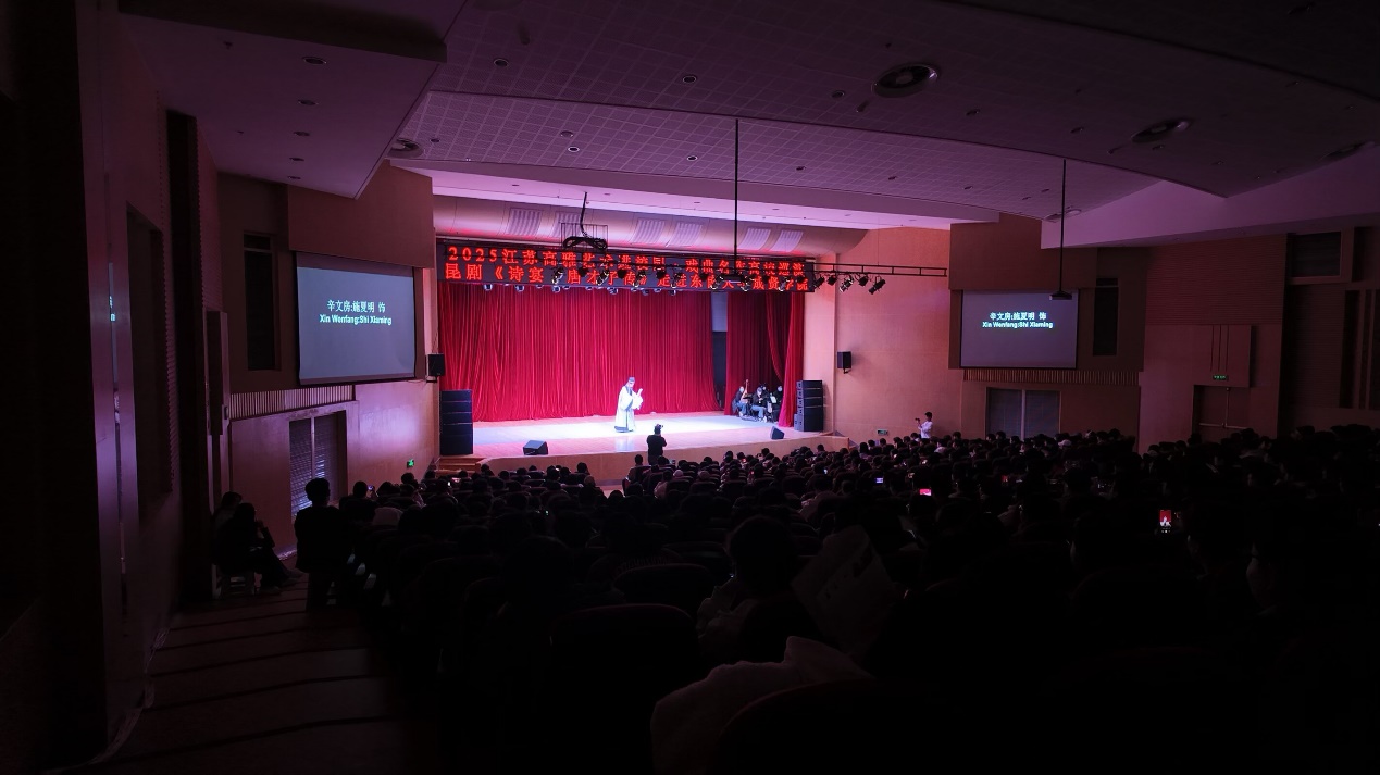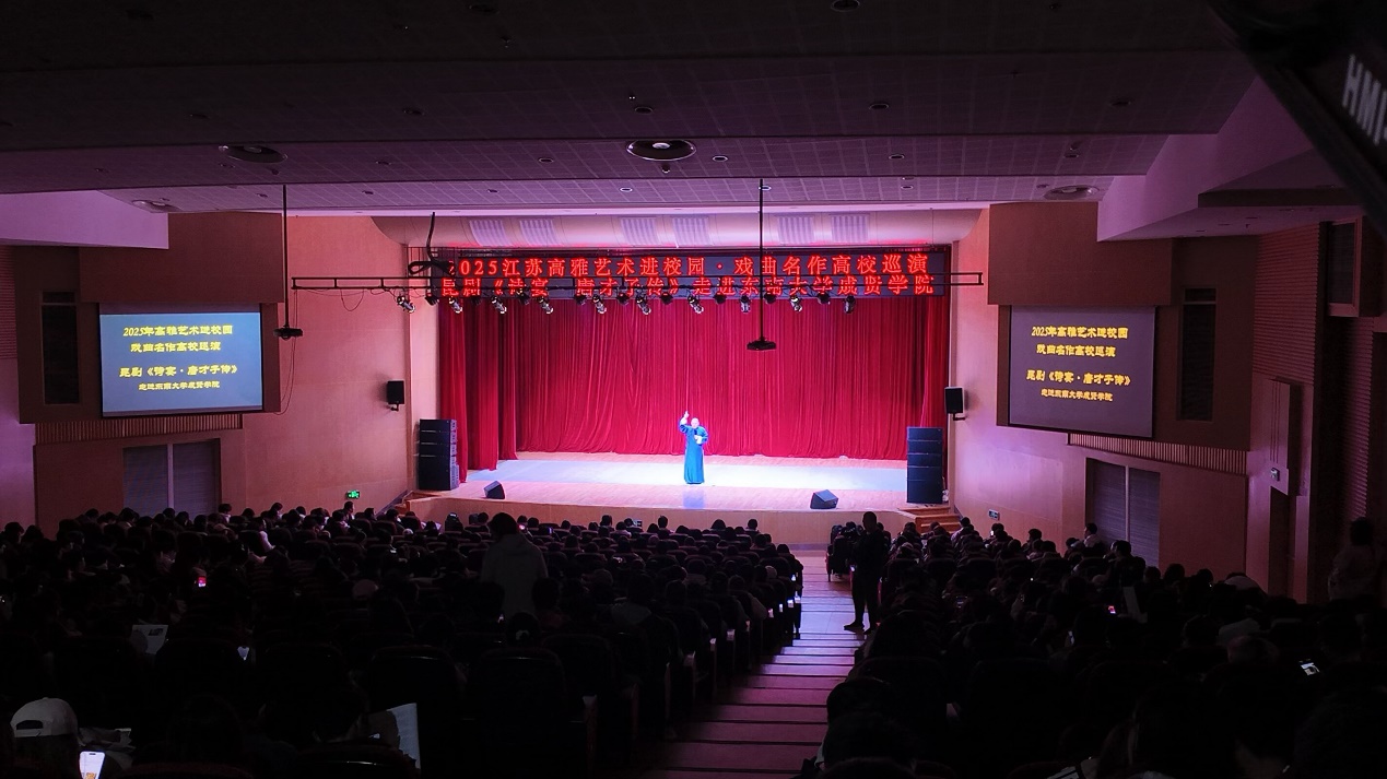 11月20日晚,江苏省高雅艺术进校园活动——江苏省演艺集团昆剧院原创昆剧《诗宴・唐才子传》在我校综合楼报告厅精彩上演,部分教职工及610名同学共赴一场跨越千年的“诗宴之约”。