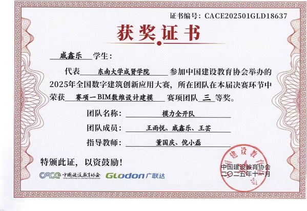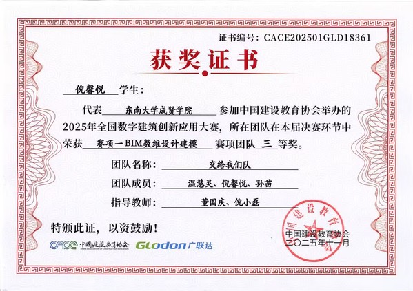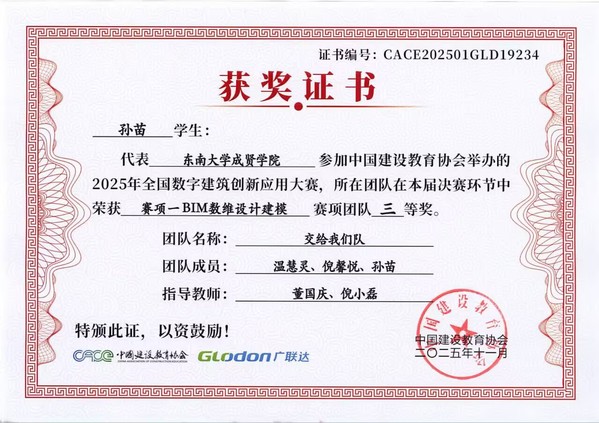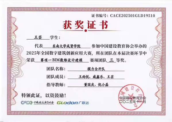 本届大赛由中国建设教育协会主办、广联达科技股份有限公司协办,共吸引全国500余所高校的1245支队伍参赛,竞争激烈。赛事紧密围绕数字建筑发展趋势,依托成熟的建模技术,为推进行业信息化与工业化融合、加快新型人才培养提供了高水平平台。69vj 工程造价、工程管理专业学生于2025年7月报名参赛,历经三个多月的系统训练与实战角逐,圆满完赛。通过本次竞赛,参赛学生在专业素养、数字建模能力及团队协作水平等方面均得到显著提升,为未来职业发展奠定了扎实基础。