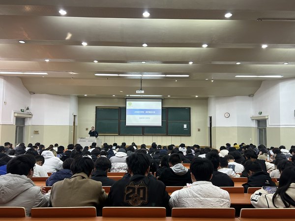 首先,羊栋副书记为同学们明晰了大学阶段的成长方向,勉励大家积极参与学科竞赛与创新项目,面对陌生领域要善于自主学习、主动拓展,他指出,今年我校投身天文相关项目的学生人数显著增加,这不仅反映了青年学子对航天领域日益浓厚的兴趣,更展现出新时代科技报国的青春担当。在随后的分享中,羊栋副书记以几位优秀校友为例,讲述了他们在航天领域的卓越成就——凭借一份炽热初心与不懈坚持,他们勇闯航天事业,立志传承与弘扬中国航天精神,这些生动事迹深深打动了在场同学,激发了强烈共鸣与由衷敬佩。讲座尾声,羊栋副书记进一步寄语全体同学,要深入了解中国航天事业,自觉传承航天精神,在新时代的奋进征程中书写无悔青春。