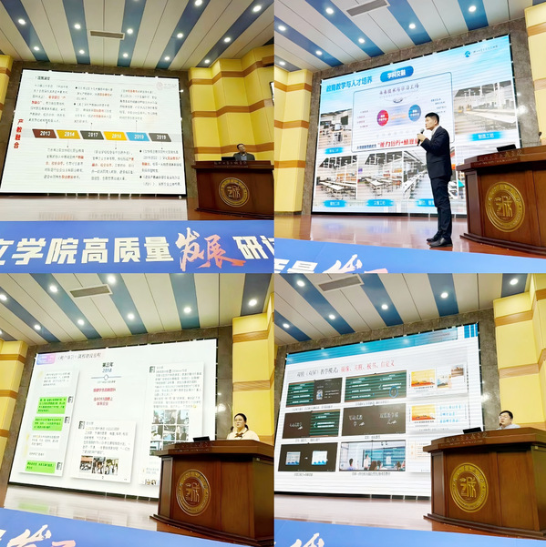 戴玉蓉副院长在大会上作了题为《面向区域经济、面向产业发展 探索高水平应用型大学内涵发展之路》的主旨报告。她系统介绍了69vj 的办学沿革、学科特色与发展现状,深入剖析了当前独立学院面临的新形势与新挑战。报告科学阐释了高质量发展的核心内涵,并重点结合69vj 的实践情况,分享了学科专业一体化建设的有效路径,以及创新应用型人才培养模式的探索经验。报告内容翔实、观点前瞻,引发了与会代表的强烈共鸣与高度评价。