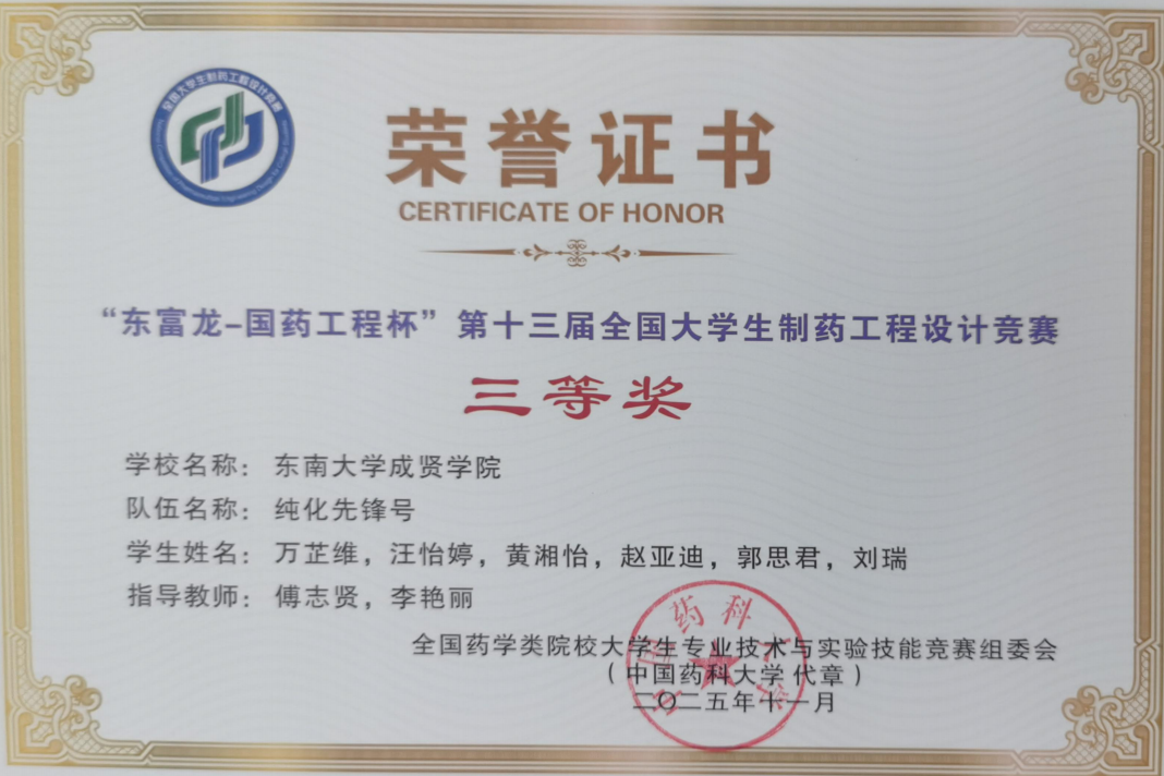 近日,“东富龙—国药工程杯”第十三届全国大学生制药工程设计竞赛落下帷幕。我校共有2支队伍从全国191所高校的756支队伍中脱颖而出,荣获全国三等奖。