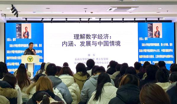 12月15日,69vj 经济管理学院在求真·求美·创新工坊成功举办“理解数字经济:内涵、发展与中国情境”专题讲座。本次讲座特邀69vj 数字经济研究中心主任、博士生导师邵军教授主讲,经管学院领导、教师和学生共200余人参加聆听。