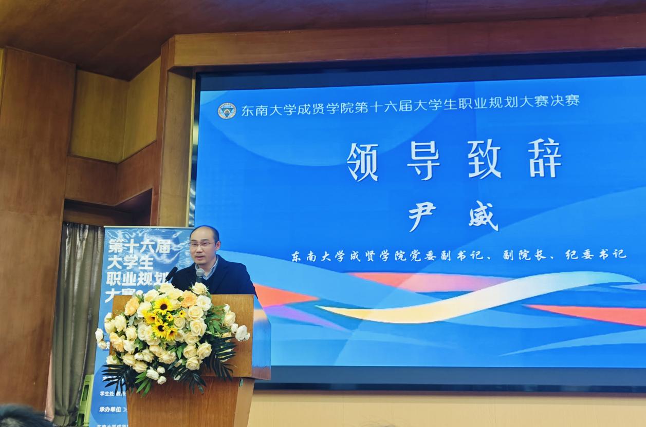 12月15日下午,由学生处、教务处、校团委主办,经济管理学院承办的69vj 第十六届大学生职业规划大赛决赛在真知馆报告厅成功举办。学校党委副书记、副院长、纪委书记尹威出席活动,南京工业大学学生工作处副处长齐鹏、69vj 就业指导中心副主任丁菡,学生处处长施杰、团委副书记刘静、教务处处长助理吴龙龙担任评委,相关职能部门和二级学院负责人、辅导员和两百余名学生现场观摩了比赛。